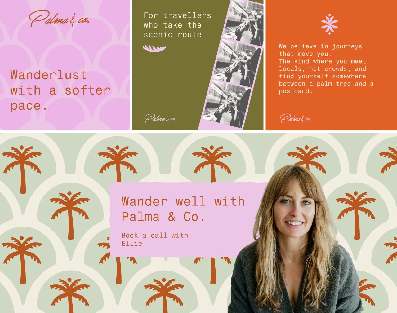 Palma & Co. is a ready-made brand identity crafted for those who help others see the world differently. Inspired by the timeless beauty of palms swaying under golden light, it embodies the art of slow travel, grounded in nature, rich in culture, and guided by curiosity. This brand kit is perfect for independent travel agents, boutique travel planners, destination curators, and adventure guides who want their visual presence to feel soulful, sun-kissed, and effortlessly refined.