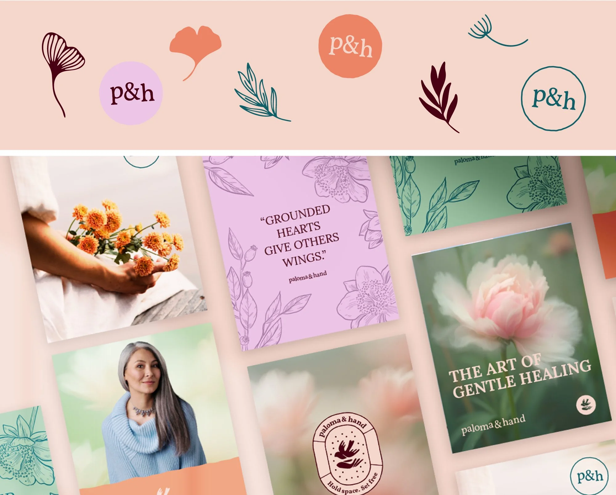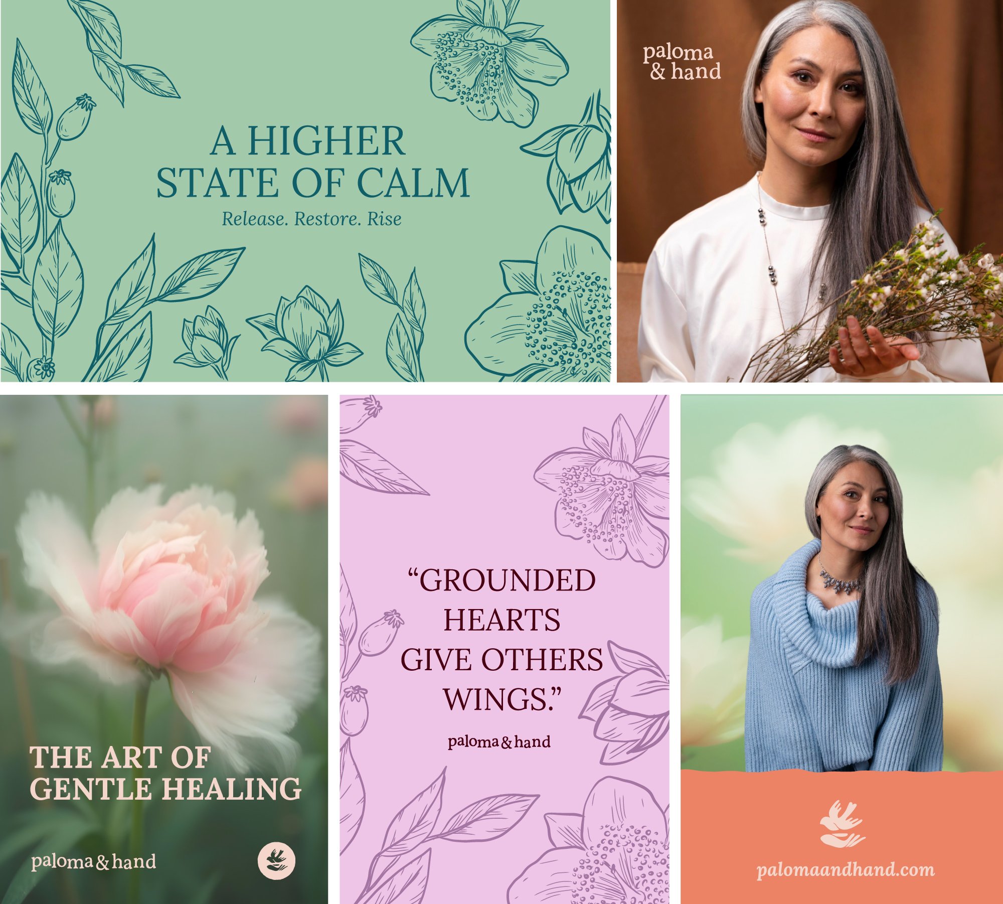 Paloma & Hand is a ready-made brand identity crafted for those who guide others toward balance, peace, and renewal. Inspired by the symbolism of a dove released from an open hand, it captures the harmony between being held and being free, the heart of every healing practice.